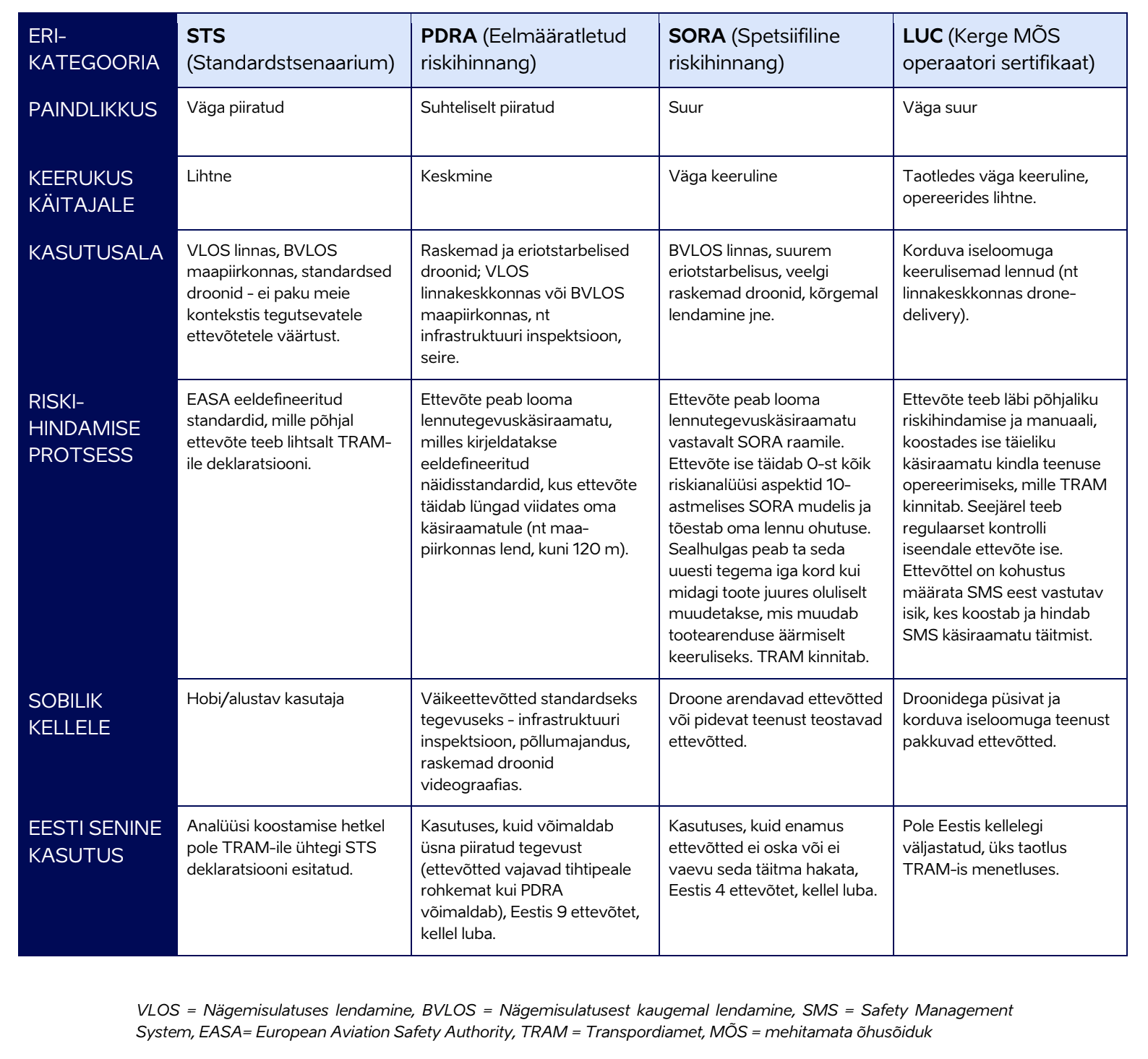 Tänases seadusandluses on erikategooria droonide käitamiseks 2 otsest võimalust: